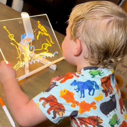 L’effet “waouh” de la lumière qui suit le feutre capte beaucoup mieux leur attention qu’un cahier classique ou des crayons.