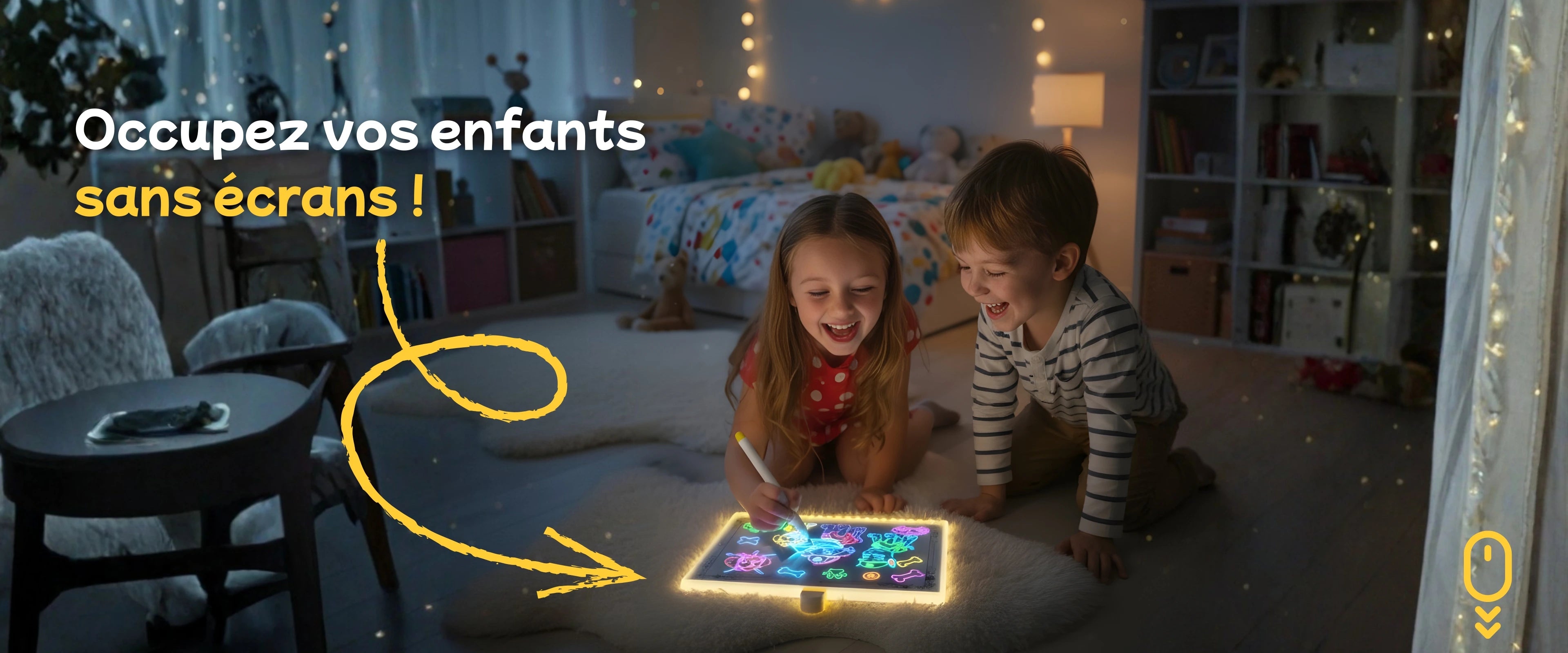 Il ne s’agit pas d’un écran comme une tablette ou une TV : il n’y a ni lumière bleue agressive, ni vidéo qui défile, juste la lumière qui suit leurs dessins.